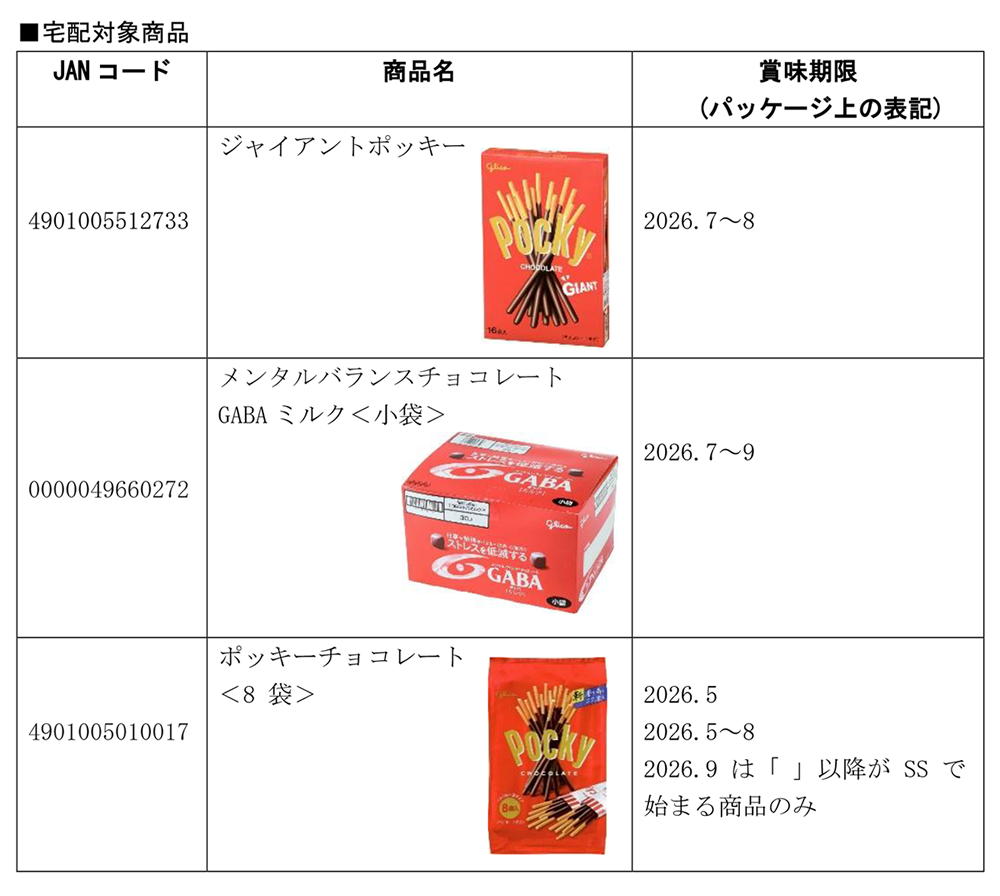 「当社が製造・販売する『ポッキーチョコレート』と『ポッキー極細』を含むチョコレート製品 20 品目において、本来の風味と異なる商品の流通が判明したため、当社の品質方針に則り、当該商品を自主回収いたします。原因は、該当するチョコレート製品の主原料であるカカオ豆を貯蔵していた物流倉庫において、当該倉庫の改修工事の際に、暫定的にカカオ豆と香辛料を同一場所で保管したため、香辛料の香りがカカオ豆に移ったことによるものです。なお、対象商品については、チョコレート製品では本来感じられない香辛料由来の風味を感じる場合がございますが、そのままお召し上がりいただいても安全性に問題はございません。」という旨の連絡がありました。