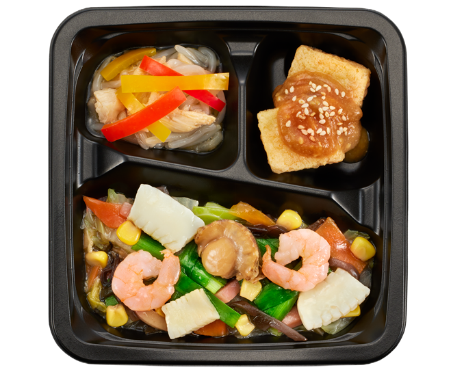 | エ | 1 | ホキの磯天和風あん/牛肉の炒め物(トマト風味) |